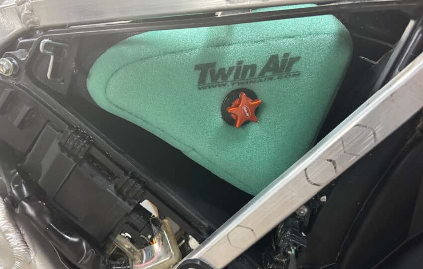 The Twin Air PowerFlow kit is a lightweight aluminum cage that is designed to replace the stock CRF backfire screen and filter system to improve performance by allowing more airflow. By installing the Twin Air PowerFlow kit, we eliminated the backfire screen, allowing more air to flow into the intake system. Installation was easy as: